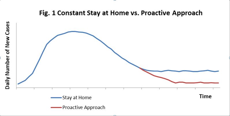 The authors believe that we will be able to contain the pandemic and resume economy growth and normalcy of our live and work, without the need to attain “herd immunity” as a precondition, as long as we take this proactive approach of keeping social distancing, testing for coronavirus, contact tracing, and quarantine enforcement. To ensure the effectiveness of this approach in keeping the pandemic under control, we need to put together a comprehensive set of legal, organizational, technological, and financial support before reopening any region. A close monitoring of the situations must be kept at all levels. Should any region open up prematurely or fail in implementing the approach we simply send the entire region back to isolation and start all over again.